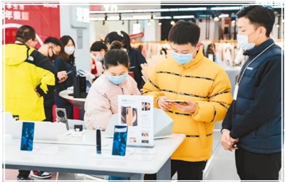 消费者在荣耀手机门店体验折叠屏手机。 |
