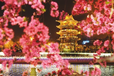 4月11日,河北省沧州市城区大运河景观带春花烂漫。 |