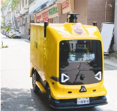 湖南省长沙市雨花区东塘街道枫树山社区,一辆无人车正在运输中。 |