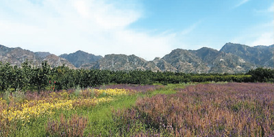 沿步行道西行便进入大雁滩的核心区,远远传来二人台婉转悠扬的声音。在密林一隅,游客们聚拢在一起,正投入地听着纯正原生态的二人台。土默特右旗是“中国二人台文化艺术之乡”,在这里听二人台演出,别有一番风味。大饱耳福后,继续行进。这里专门设置了当地农副产品展销区,有蜂蜜、小米、胡麻油等绿色纯天然农产品供游客选购。紧挨着农展区的是土默特右旗非物质文化遗产展示长廊,茶汤、剪纸、阴把缠枪、吹打乐等,无不向人们展示着古老土默川平原的人文风俗。一路走来,沿途景点让人目不暇接,乡村音乐酒吧、百鸟园、儿童游乐园、农家四合院……点缀在千亩桃杏林中,可以满足不同游客的多样化需求。