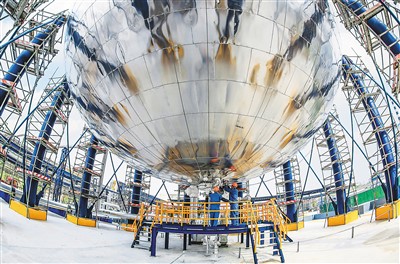 齐鲁石化第二化肥厂气体联合车间员工正在调控4000立方米二氧化碳球罐达到最佳工作状态。 |