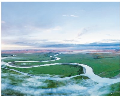 在四川省阿坝藏族羌族自治州若尔盖县唐克镇航拍的九曲黄河第一湾。 |