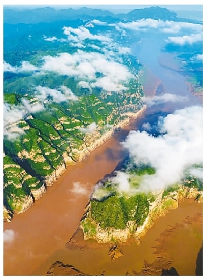 河南省济源市的黄河上空现云海景观。 |