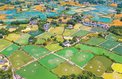 8月9日,重庆市梁平区礼让镇川西村,成片的鱼塘与村落、田园纵横交错,诗画般的田园美景宛若“江南水乡”。