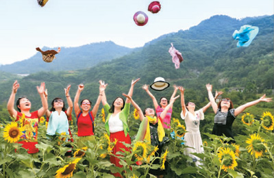金黄金黄的葵花成为大巴山深处的一道景致。我分明感受到,每一朵葵花都是一份盛情的请柬,让那些亲山近水的游人远道而来。游客带火了当地旅游,让越来越多的百姓把日子过得和葵花一样灿烂。每年葵花盛开季,当地的民宿异常火爆,农家饭菜和山货特产备受游客青睐。大朵大朵的葵花,成了百姓引以为傲的金花银花。