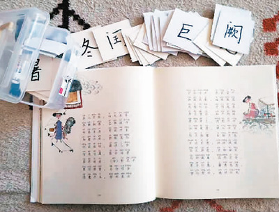 程宇坤为女儿嘟姐制作的汉字卡。 |