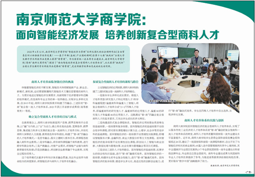 南师大商学院面向智能经济的复合型商科人才培养体系,实现了从服务传统工业经济的人才培养体系到“智·商”融创的复合型商科一流人才培养体系的转变,商科人才培养质量和国家级一流专业建设水平显著提升。近年来,南师大商学院学生获得全国和省级竞赛金奖和银奖近20项,建设了一批国家级和省级一流课程和教材,自主开发了与智能经济相关的商业案例,65篇入选中国管理案例共享中心案例库,其中22篇被评为全国百优案例;3个专业获批国家级一流专业建设点和省级品牌专业,专业排名位居全国前列。商科专业建设成果为我国商科专业人才培养改革提供了参考,为推进高等教育供给侧结构性改革、更好服务“数字中国”战略提供了助力。