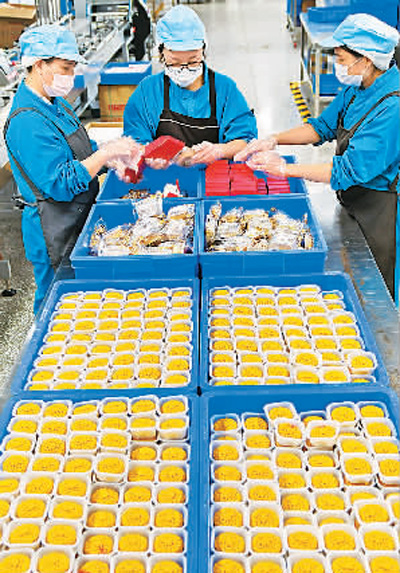 9月6日,工人在山东省烟台市福山区一家月饼加工企业包装车间工作。 |