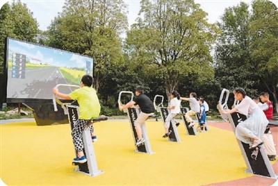 市民和游客在安徽省合肥市南艳湖公园体验智能设施乐享健身运动。 |
