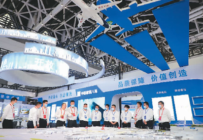第十二届中国西部国际物流产业博览会暨第六届中国(西安)智慧交通博览会日前在陕西西安国际会展中心举行。本届博览会重点展示中欧班列、多式联运、物流装备、智慧交通等内容。图为中建八局西北公司工作人员介绍其承建的西安咸阳国际机场项目。