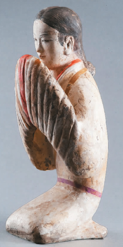 西汉塑衣式拱手跽坐女俑。 |