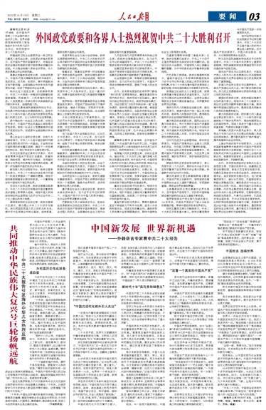 外国政党政要和各界人士热烈祝贺中共二十大胜利召开