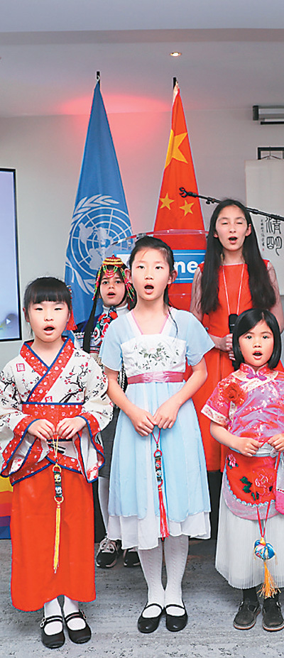 多国儿童合唱中文歌曲《让我们荡起双桨》。 |
