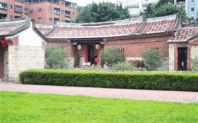 在台湾新北市芦洲区的街巷里,记者乘车几经探寻,终于找到夹在林立高楼间一处清末闽南风格红砖院落。它的名字叫“芦洲李宅”。