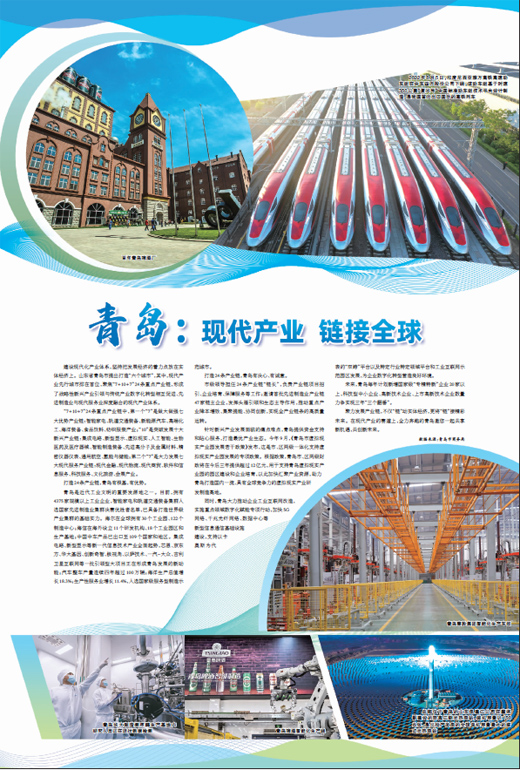 青岛是近代工业文明的重要发源地之一。目前,拥有4375家规模以上工业企业,智能家电和轨道交通装备集群入选国家先进制造业集群决赛优胜者名单,已具备打造世界级产业集群的基础实力。海尔在全球拥有30个工业园、122个制造中心;海信在海外设立11个研发机构、18个工业园区和生产基地;中国中车产品已出口至109个国家和地区。集成电路、新型显示等新一代信息技术产业全面起势,芯恩、京东方、华大基因、创新奇智、极视角、以萨技术、一汽-大众、吉利卫星互联网等一批引领型大项目正在形成青岛发展的新动能;汽车整车产量连续四年超过100万辆;海洋生产总值增长18.3%;生产性服务业增长11.4%,入选国家级服务型制造示范城市。