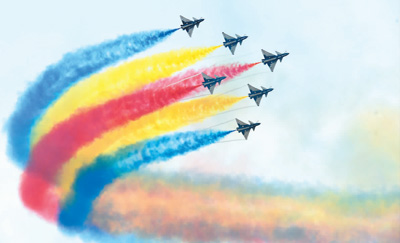 图为11月8日,中国空军八一飞行表演队在中国航展上进行飞行表演。 |