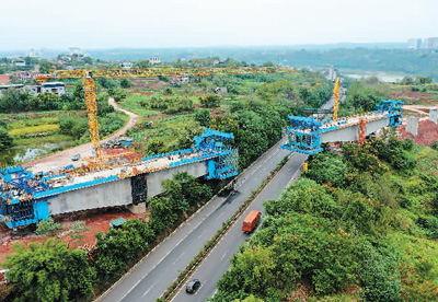 10月7日,在渝昆高铁沱江特大桥跨厦蓉高速连续梁建设现场,中铁四局建设者全力以赴抢抓施工进度。 |