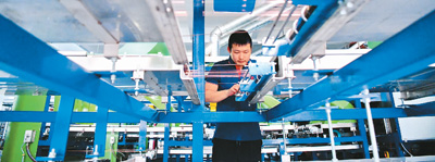 5月24日,在江西省赣州市章贡区的佳腾电业(赣州)有限公司自动化制造车间内,工人正在生产出口定制的精密小型扁平漆包线产品。 |