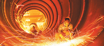6月10日,北京市专精特新“小巨人”企业——天海工业的工人正在加紧生产LNG储罐。 |