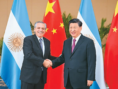 习近平强调,中方愿同阿方加强治国理政经验交流,支持彼此走符合本国国情、顺应人民期待和时代要求的发展道路,支持彼此维护主权、安全、发展利益。双方应该开展文化、媒体、教育、体育、青年、地方等领域交流合作,加快推进高质量共建“一带一路”合作,深化拓展农业、能源、基础设施、航天等领域合作。中方愿进口更多阿根廷优质产品。