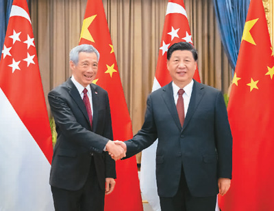 习近平指出,面对世纪疫情和百年变局,中新关系发展势头良好,不仅助力两国抗疫和经济复苏,而且为地区稳定和繁荣注入了正能量。中新关系具有前瞻性、战略性和示范性。中共二十大对中国全面建设社会主义现代化国家、全面推进中国式现代化作出了战略部署。中方愿同新方携手推动两国与时俱进的全方位合作伙伴关系不断取得新进展。