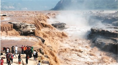 游人在黄河壶口瀑布游览。 |
