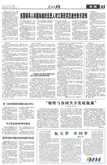 多国领导人和国际组织负责人对江泽民同志逝世表示哀悼