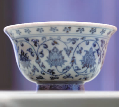 明永乐款青花缠枝莲纹压手杯,故宫博物院藏。 |
