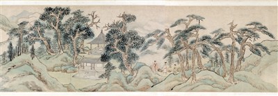 吴门画派创始人沈周所绘《碧山吟社图卷》是惠山雅集的生动写照。明成化十八年(1482年),秦旭于惠山倡建“碧山吟社”,发起时共由10位“斯文老人”组成。吟社成员纵情山水,品茗赋诗,风雅至极,引得时人追慕称颂。碧山吟社成立时沈周虽未莅临,但亦有所耳闻,并应秦家之邀为“梁溪十老”绘像留念。画卷前半部分是二泉亭、泉池与茂林修竹,后半部分则是正在吟诗行乐的诸老。