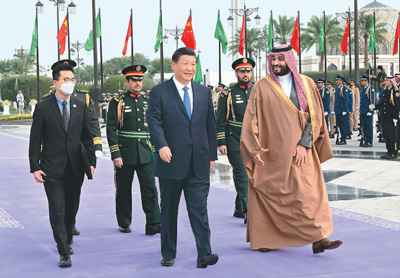 当地时间12月8日中午,沙特王储兼首相穆罕默德代表国王萨勒曼为正在沙特进行国事访问的国家主席习近平在利雅得王宫举行欢迎仪式。 |