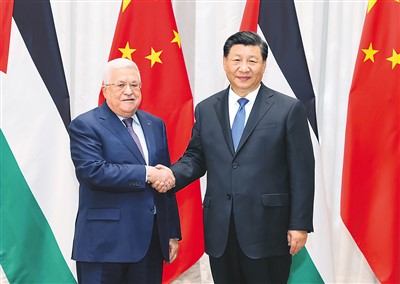 习近平指出,中巴友好深入人心。半个多世纪以来,双方始终相互信任,彼此支持。无论国际和地区形势如何变化,中方都坚定支持巴勒斯坦人民恢复民族合法权利的正义事业,始终同巴勒斯坦人民站在一起。国际社会应该把巴勒斯坦问题置于国际议程优先位置,坚持“两国方案”方向和“土地换和平”原则,在联合国有关决议和“阿拉伯和平倡议”基础上,推动重启和谈。中方将继续为推动巴勒斯坦问题早日得到公正持久解决不懈努力。