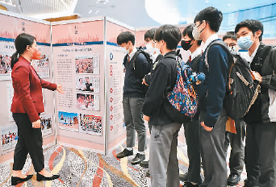 图为学生参观图片展。 |