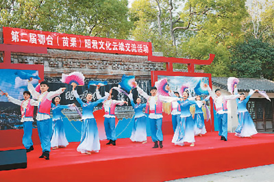 活动中,身在台湾的兴山籍大陆配偶万怡尘深情朗诵《乡愁》《乡愁四韵》,并通过视频连线的方式,对话兴山活动现场的至亲好友,互诉思念之情。宜昌和台湾活动现场还分别表演了舞台剧《昭君别乡》和主题歌舞《昭君颂》。
