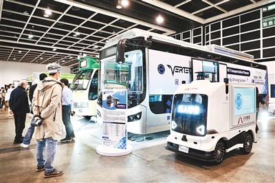 图为展商展示的电动车及无人驾驶车辆。