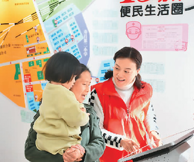 浙江省建德市寿昌镇以现代社区建设为契机,组织党员聚焦“一老一小”重点群体,主动推行“每天义务劳动一小时”等志愿服务。图为党员志愿者在“安心家”驿站为外来就业人员提供咨询服务。 方 丽摄