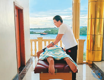 医疗队刚刚抵达后,前来咨询问诊的华侨华人就络绎不绝,其中很多人都是慕名中医正骨推拿而来。虽然医疗队的物资尚未抵达,但是为了尽快解决患者的迫切需求,队员们集思广益,各尽所能,在现有条件下为患者提供诊疗和咨询服务。段邦就把一张诊疗床摆放在临时驻地,面朝大海开启中医正骨推拿治疗。