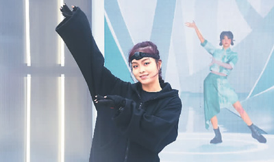 2022杭州(国际)未来生活节在杭州亚运会主会场的奥体中心空中观景平台举行,吸引市民游客参与体验。图为舞蹈演员与虚拟数字人一起为观众进行表演。 |