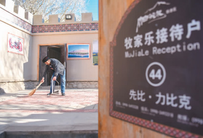 在塔什库尔干塔吉克自治县塔什库尔干乡托格伦夏村,牧家乐老板先比·力比克打扫院子。据了解,塔县政府正在积极筹划培训更多农牧民,让更多牧民变司机、村民变导游。先比·力比克就是于2019年参加培训后在家门口开办了牧家乐和民宿。 |