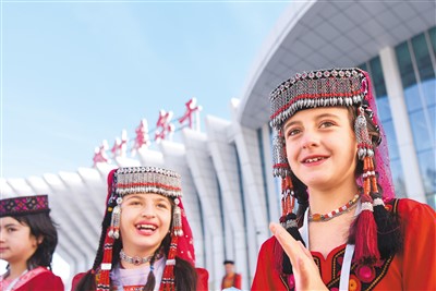 塔吉克族小朋友在机场迎接首航乘客。 |