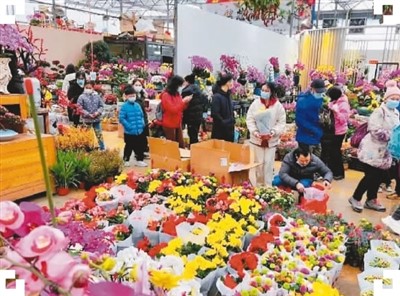 “花开富贵”的水仙、“猪笼入水”的猪笼草、“多子多福”的富贵子、“有银有楼”的银柳、“五子拜寿”的五代同堂、“大展宏图”的红掌、“花开富贵”的牡丹轮番吸引着人们的眼球,大丽花、海棠、菊花、玫瑰花、鸡冠花、康乃馨、百合、茶花等也毫不逊色,真是“春色满园关不住,百花盛开迎春来”。我每年必买几盘“堪与梅花竞标格,冲寒也向雪中开”的水仙,它高雅清新的香味让满屋芬芳。