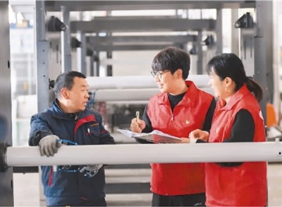 浙江省杭州市临安区锦城街道坚持党建引领,组织60余名党员干部和商会会员建立“e锦助企帮帮团”,联合锦城商会制定明确的服务专业人才计划和助企复工复产任务清单。图为日前“e锦助企帮帮团”走入企业了解情况,帮助企业排忧解难。