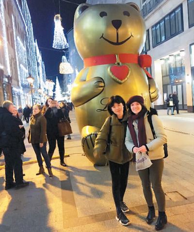 黄忻(左)与她的匈牙利朋友Dora一起过农历新年,Dora会说中文,对中国文化非常感兴趣。 |