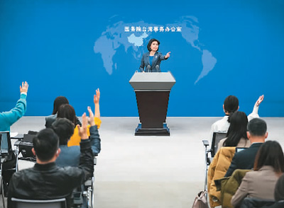 图为国台办发言人朱凤莲邀请记者提问。 |