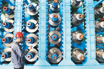 高质量是中国制造顺利出海的重要基础。图为不久前,安徽马鞍山经开区日发纺织机械有限公司工人在组装出口到“一带一路”沿线国家的智能纺机。 |