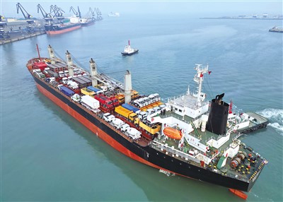 2月23日,中非班轮“塔内斯梦想”轮从山东港口烟台港起航,前往坦桑尼亚达累斯萨拉姆港。 |