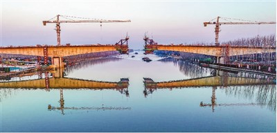 二月二十六日,江苏省宿迁市宿豫区仰化镇268省道京杭大运河特大桥项目施工现场。 |
