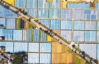 近年来,江西省赣州市赣县区大力推进无公害蔬菜生产,打造粤港澳大湾区蔬菜专供基地,推动蔬菜产业高质量发展,助推乡村振兴。图为2月22日,航拍赣县区王母渡镇浓口村集中连片蔬菜基地。 |