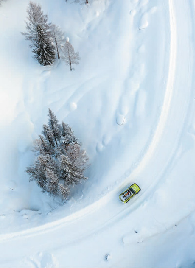图为游客驾车前往新疆阿勒泰地区阿尔泰山野雪公园。