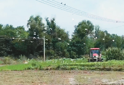 田野里,农民已在翻耕土地。成群的白鹭落在农民的锄头旁,寻觅新鲜土壤里的蚯蚓与虫子。它们并不怕人,农民也不驱赶它们,这一幕构成了早春田野里人与自然互爱共生的生动画面。