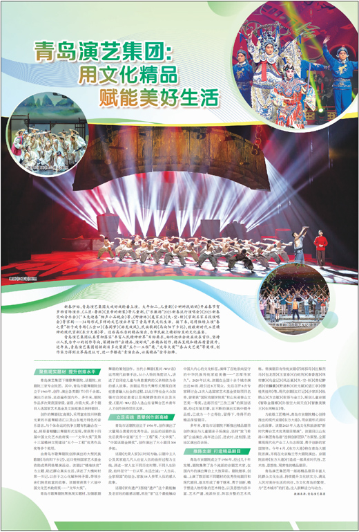 青岛演艺集团用一部部精品剧目丰富人民群众文化生活,持续提升文化软实力,满足人民对美好生活的向往,为文化青岛的繁荣、为“艺术城市”的打造,注入新鲜活力与动力。